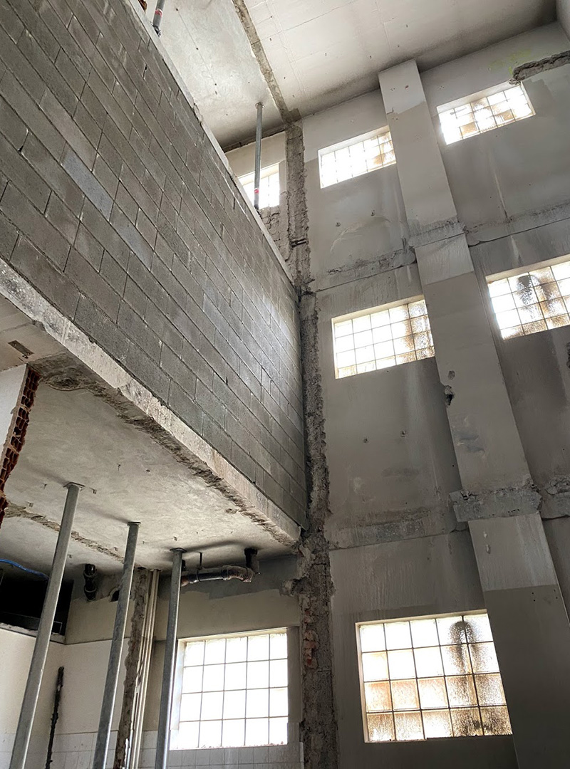 Demolition and shell construction work is currently underway, we are cutting new stairway openings into the building structure and thus opening up the new access routes.